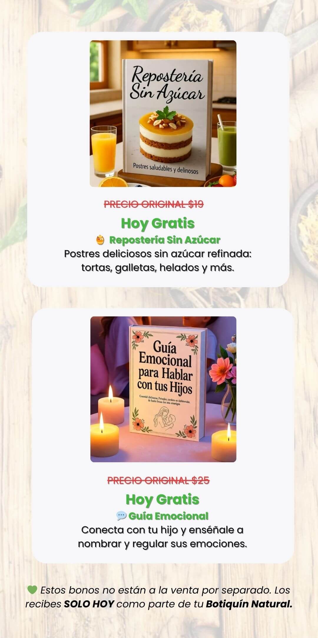 El ebook principal tiene docenas de remedios organizados inteligentemente, más los bonos gratis: